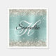 Platinum Glitter Pale Turquoise Foil Monogram Napkin