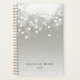 Chic planner with a gold spine features classic black lettering on a silvery grey background adorned with a burst of white bokeh lights at the top. Personalise with two lines of custom text, making this planner a perfect choice for businesses, appointments or daily tasks.
