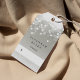 Chic hang tags for your boutique or retail business feature classic black lettering on a silvery grey background adorned with a burst of white bokeh lights at the top. Personalise with two lines of custom text. White space provided to write in your prices. Adjust the currency symbol as needed using the template. Backs are solid white for your additional custom text or handwritten message.