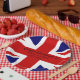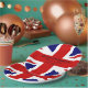 Celebrate the first ever Platinum Jubilee, in U.K. history. Union Jack banner, with the Queen Elizabeth II, jubilee details.