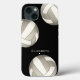 Women's volleyball iPhone tough case features three abstract platinum and white panelled volleyballs on a customisable black background - personalise with her name in matching platinum colour - by katz_d_zynes | also available for other devices including other iPhone models, iPad and Samsung ... for other devices, select your device type from the “Style Options” section on this page … for customisation assistance, simply click the “Ask this Designer” link below