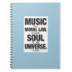 Plato, the Ancient Greek philosopher was the student to Socrates and the teacher to Aristotle. Most of his life has been reconstructed through his writings. While I personally do not know when this quote was said, many of us can relate to how music can inspire us. We let it carry us out of our bad moods and heart breaks. We let it help us create stories in our head or relieve boredom. This notebook could be used for anything, including (but not limited to) song writing and story telling. Open the doors to the world of music and imagination. Note: Thank you to bestquotes.com for helping me find this very inspirational quote and biography.com for helping me find the background information on Plato.