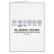 No need to be a mathematician or a spiritual person to enjoy any of these gifts featuring the various "Platonic Solids As Derived From The Fruit Of Life". Included are the 5 Platonic solids known as tetrahedron, hexahedron, octahedron, dodecahedron, and icosahedron, along with Metatron's Cube in comparison. In geometry, a Platonic solid is a convex polyhedron that is regular, in the sense of a regular polygon. Specifically, the faces of a Platonic solid are congruent regular polygons, with the same number of faces meeting at each vertex; thus, all its edges are congruent, as are its vertices and angles. Throughout the ages, sacred geometry has been used in the planning and construction of religious structures and religious art. Make others do a double-take regarding all of the five platonic solids with any of these memorable "Platonic Solids As Derived From The Fruit Of Life" gifts!