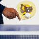 Ping Pong Paddle with illustration of head of platypus in yellow circle, cute Australian wild animal design for kids by Maxi Harmony