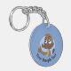 Acrylic keychain with illustration of head of platypus in blue circle, cute Australian wild animal design for kids by Maxi Harmony