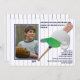 A baseball-themed invitation all baseball fans will love. The white background has blue pin stripes and features a bat, cap and baseball, just add your hitter's photo to make it your own. The card is easy to customise with your wording, font, font colour and choice of six paper types.