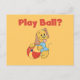 A cute dog plays with a ball and red text reads "Play Ball?" on dog T-shirts, bodysuits, mugs, cards, stickers, puppy dog tote bags, and much more.