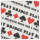 Create with a dose of bridge attitude with this fabric featuring the four card suits along with the following bridge advice: "Play Bridge For A Sharper Mind". No need to be a