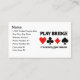 Showcase your wry bridge / duplicate bridge sense of humour with this customisable business card featuring the four card suits along with the saying "Play Bridge It's Cheaper Than Therapy". Make others do a double-take the next time you play bridge with this memorable bridge saying business card! No need to be an avid bridge player to enjoy introducing yourself with this bridge attitude business card!