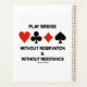 If you play bridge -- the game of bridge or duplicate bridge -- completely, you'll enjoy this wry bridge saying planner featuring the following bridge advice: "Play Bridge - Without Reservation & Without Resistance". Comes with the four card suits. Make everyone do a double-take on how to play the game of bridge with a dose of tongue-in-cheek bridge humour with this planner!