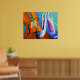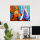 An 11x14 poster of "Play Paint Pointe" by artist, J. Travis Duncan. This is a winning piece by J. Travis Duncan that represents the arts and how they are imperative for each other. The green artist's brush is playing the cello while painting the ballet pointe shoes. The lace of one of the pointe shoes is becoming one of the cello's sound holes (F-holes). This painting was done with a palette knife. NOTE: The artwork, "Play Paint Pointe", is protected by copyright for artist J. Travis Duncan (www.jtravisduncan.com). Copies and/or duplication are prohibited. Any questions about use can be forwarded to panoplei.