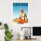 A retro poster that never was until now. A recreation of an old poster that should have been. A Playa Ancon Beach vintage style beach scene from the art deco era. Bright colours with a woman on the beach sun bathing  with a red blanket and a flapper style polka dot cap. Exclusively on Zazzle.com/Retro_Art Store.
