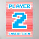 Player 2, Arcade Game, - Playing With Stripes series, blue and red stripes, typography poster, typography t shirt,