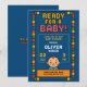 Baby shower arcade theme, Retro pixel art design, Vibrant colour celebration, Game start party fun, Arcade style invitation, Joyful baby event, High score party vibe, Exciting family gathering, Colourful gaming decor, Unique shower experience
