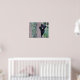 Poster with the photo of a cute playful baby black bear cub in a tree
