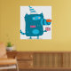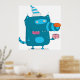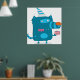 Brighten up any space with this poster featuring a whimsical blue cartoon monster wearing a striped party hat and holding a gift. Perfect for kids’ rooms, playrooms, or birthday party décor, this playful design adds colour and humour to your walls. A fun and cheerful art print, it makes a great gift for anyone who loves quirky and imaginative characters.