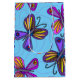 Purple and pink modern design featuring playful butterflies on a blue background.