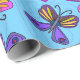 Purple and pink modern design featuring playful butterflies on a blue background.