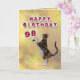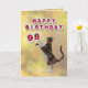 A cute cat on his hind legs playing with a birthday message spellt out in balloons. A great card for a cat-lover.