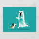 Playful Cat and Friendly Ghost – Cute Halloween Holiday Postcard