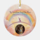 Crafted on premium white ceramic, this memorial ornament showcases vibrant yet gentle watercolor hues that capture the ethereal beauty of the Rainbow Bridge. The smooth, glossy finish enhances the dreamy quality of the design, creating a treasured keepsake that brings comfort during difficult times. Whether displayed on your Christmas tree, hung in a sunny window, or placed in a special memorial space, this ornament serves as a gentle reminder of purrs, head bumps, and unconditional love.