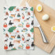 Playful Cats and Christmas Trees Pattern Tea Towel