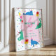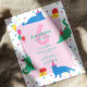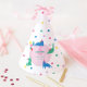 A bright and cheerful birthday design featuring playful cats in vivid blue and mint tones, complete with tiny party hats, colorful balloons, wrapped gifts, and scattered confetti dots. The soft pink center panel balances the lively colors, giving the whole piece a fun, modern, and candy-bright personality.