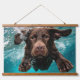 Playful Chocolate Labrador Swimming Underwater Hanging Tapestry