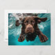 Playful Chocolate Labrador Swimming Underwater Postcard