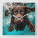 Playful Chocolate Labrador Swimming Underwater Square Wall Clock