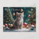 Playful Christmas Kitten by the Tree with Ornament Postcard