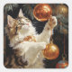 Playful Christmas Kitty Square Sticker