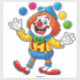 Vibrant cartoon clown in colourful outfit leaps joyfully with bright balls, perfect for kids' parties, circus themes, and family entertainment visuals.
