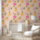 Cute lovely yellow purple fuchsia and white flowers on beautiful pink background. This wallpaper makes every girls room cosy and warm.
