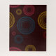 Cool, unique, trendy, urban abstract seamless illustration pattern art of colourful circles made with short, inclined lines. Modern and vibrant graphic design artwork. Pink, yellow and blue colours on dark red.