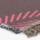 Cool, unique, trendy, urban abstract seamless illustration pattern art of colourful circles made with short, inclined lines. Modern and vibrant graphic design artwork. Pink, yellow and blue colours on dark red.
