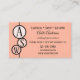 A business card featuring playful custom shapes in the colors of your choice on your own color background. A fully personalized business card template! You can of course also keep the coral pink palette as shown. All options are available in the advanced editor. The example is great for marketing targeted at a female clientele, like for a beauty professional.