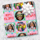 Get into the festive spirit with this cute personalized wrapping paper! A playful design featuring three of your favorite photos. The background is filled with stars, snowflakes, hearts, and Christmas trees, all adding to the cheerful vibe. The template incorporates trendy typography with the phrase “Happy Holidays,” along with your name, but all of the text can be customized. A fun, modern retro style that's perfect for Gen Z, teens, and young adults. Printed colors: pink, green, red, yellow, blue and white — or customize the colors with the design tool. Available with a matte or glossy finish.