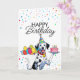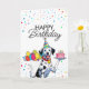 A Dalmatian holding a birthday cake, adding charm to any birthday theme.