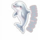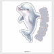 This large nursery sticker features an adorable, cartoon-style dolphin with a friendly and joyful expression. The dolphin is illustrated in a leaping pose, with a smooth, light blue and white body. It has bright, happy eyes and a slight blush on its cheeks, adding to its charm. The dolphin's mouth is open in a playful smile, conveying a sense of fun and excitement. Next to the dolphin, the word "DOLPHIN" is written in bold, playful letters, adding to the overall cheerful and inviting design suitable for a child's room.