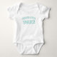 Personalised teal custom name year number cute playful fun typography Baby Bodysuit.