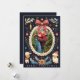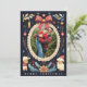 Celebrate the holiday season with this charming and whimsical Christmas card featuring festive illustrations and a customisable photo frame on the front. The card's dark background is adorned with playful holiday elements, including Santa hat wearing sheep, snowflakes, foliage, and a decorative red bow. The photo placeholder lets you add your own favourite picture, creating a personal touch for your holiday greetings. The back offers space for personalised text, making it easy to share a heartfelt message with loved ones. Perfect for spreading holiday cheer in a unique and memorable way!
