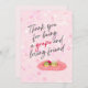 Express your gratitude with this charming card featuring whimsical grape characters and a heartfelt thank-you message. The soft pink background and playful design make it perfect for showing appreciation to a special friend. Personal and memorable, it’s a delightful way to say, “Thank you!” Enjoy!