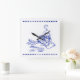 A delightful toile-inspired clock in blue willow colours featuring playful kitty cats romping in a bathroom.