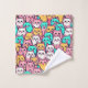 Towel set in playful, cartoon-style cats in pastel hues of pink, yellow, white, and teal. The cats have a minimalist design with wide eyes and, expressive faces, arranged closely together in a seamless pattern.