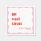 Set the tone for your pre-wedding festivities with this playful rehearsal dinner napkin, featuring the whimsical phrase "The Night Before" in bold red letters. The pink wavy border adds a touch of fun and modern charm, making it the perfect addition to your chic and stylish event. Ideal for brides-to-be and wedding planners looking to add a pop of colour and personality to their rehearsal dinner or pre-wedding gathering. Customisable with your names and date, this napkin ensures your celebration is as unique as your love story.