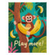 A cheerful cartoon monkey hugs a banana while climbing a tree, surrounded by tropical leaves and the upbeat phrase “Play more!” for lively kids’ room and classroom decor in warm, friendly colours and textured illustration style that boosts positive energy. Unique, descriptive wording and focused keywords align with Zazzle metadata guidelines for better discovery.
