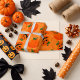 Bright orange bursts with mischievous charm as expressive jack-o'-lanterns grin across the surface. Inspired by vintage Halloween cartoons, this design blends nostalgia with festive energy. Perfect for party favours, seasonal packaging, or spooky surprises.