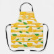 This vibrant seamless pattern apron features stylised orange slices and fresh green leaves set against bold alternating white and yellow horizontal stripes. Scattered orange and yellow dots add a fun, playful touch, making the design feel sunny, cheerful, and full of zest. Perfect for summer themes, tropical vibes, and fruity, energetic aesthetics.