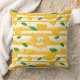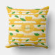 This vibrant seamless pattern throw pillow features stylised orange slices and fresh green leaves set against bold alternating white and yellow horizontal stripes. Scattered orange and yellow dots add a fun, playful touch, making the design feel sunny, cheerful, and full of zest. Perfect for summer themes, tropical vibes, and fruity, energetic aesthetics.